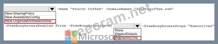 You need to ensure that the users at your company share free busy information with the users at Fourth Coffee. The solution must ensure that the meeting details included in the calendars of your company users remain hidden from the Fourth Coffee users.