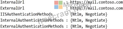 You retrieve the Exchange virtual directory settings, and you discover the following output.