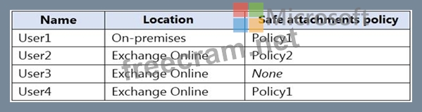 You have safe attachments policies configured as shown in the following table.