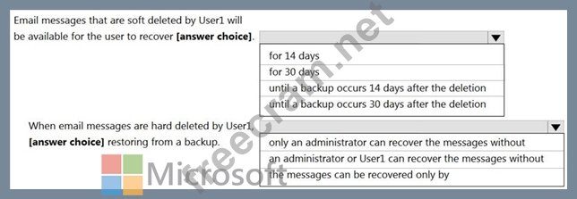 Question 63: You need to ensure that Alex Wilber can recover deleted item...