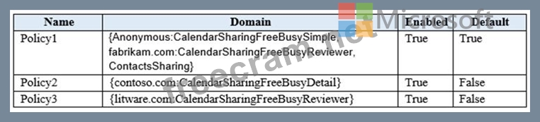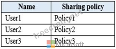 Your company named ADatum Corporation has a Microsoft Exchange Online subscription that contains the sharing policies shown in the following table.