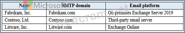 Question 28: You have a Microsoft Exchange Online tenant that uses a thir...
