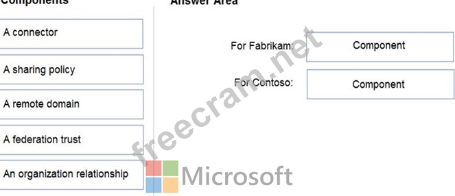 What should you configure? To answer, drag the appropriate components to the correct companies. Each component may be used once, more than once, or not at all. You may need to drag the split bar between panes or scroll to view content.