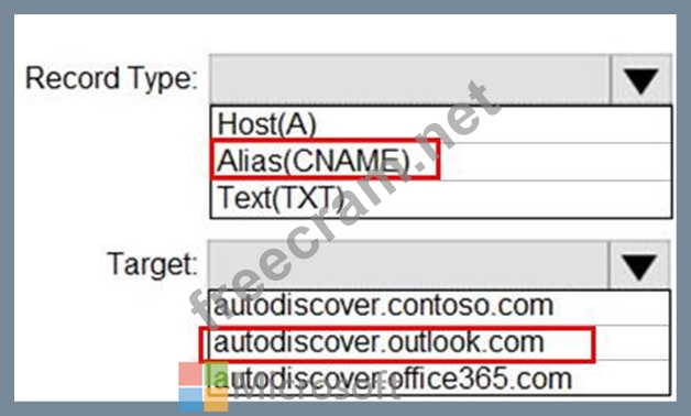 Which record should you create? To answer, select the appropriate options in the answer area.