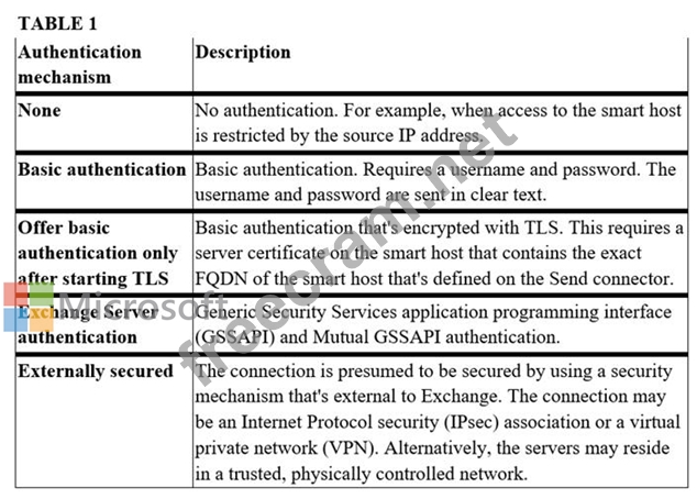 * On the next page, in the Route mail through smart hosts section, select the authentication method that's required by the smart host. Valid values are: