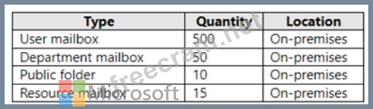 You have a hybrid deployment between a Microsoft Exchange Online tenant and an on-premises Exchange Server 2019 organization. The deployment contains the resources shown in the following table.