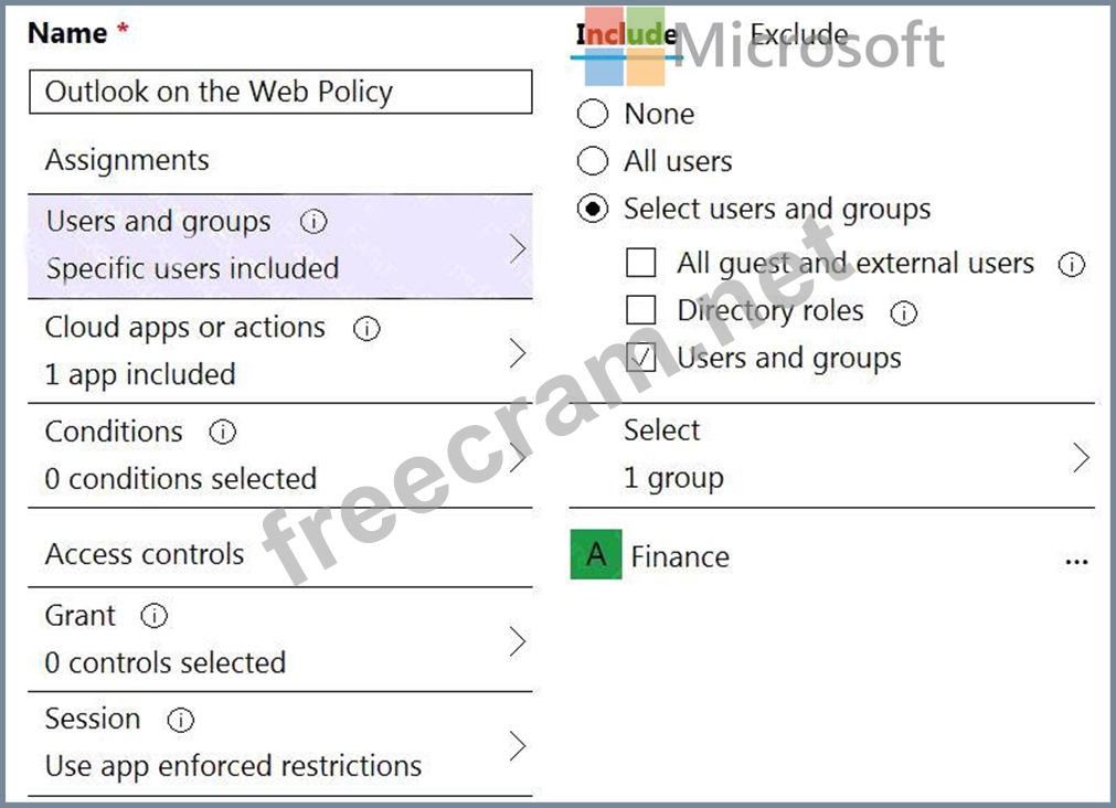 A conditional access policy is configured as shown in the following exhibit.