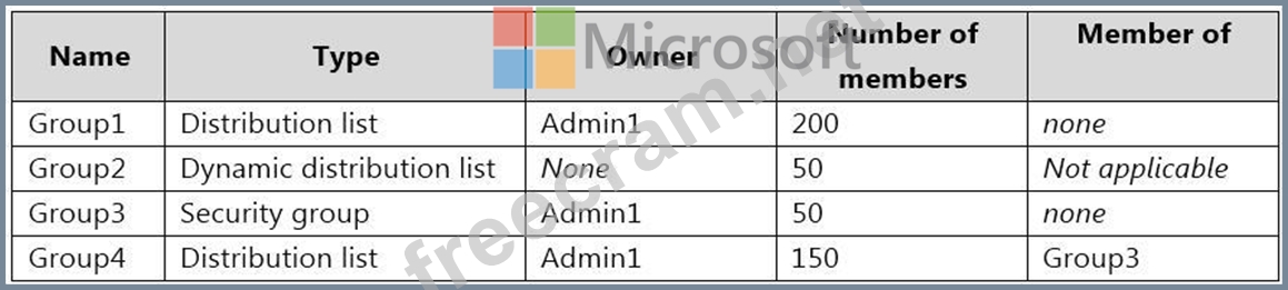 You have a Microsoft Exchange Online tenant that contains the groups shown in the following table.