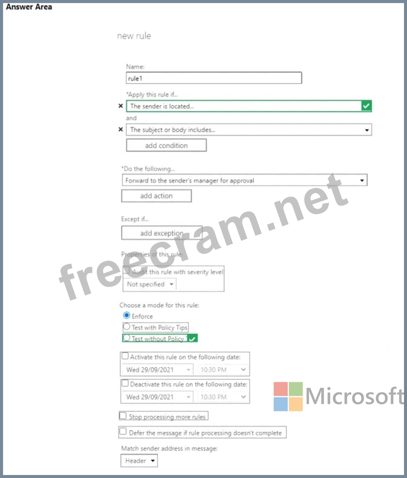 Question 134: You create a transport rule as shown in the following exhibi...