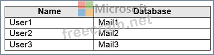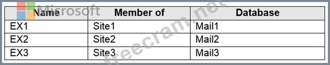 You have a Microsoft Exchange Server 2019 organization that contains the Mailbox servers shown in the following table.