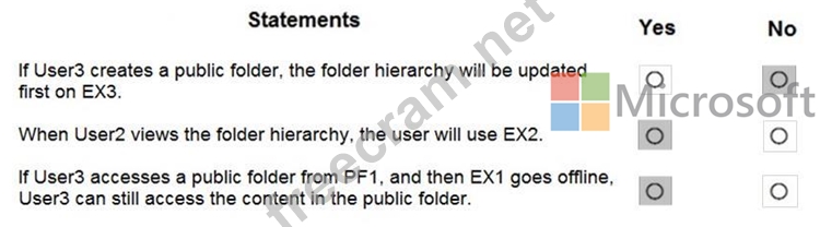 You create the public folder mailboxes shown in the following table.