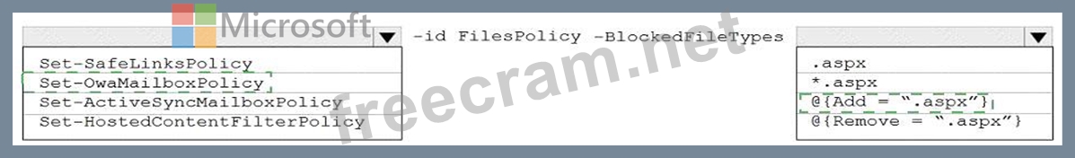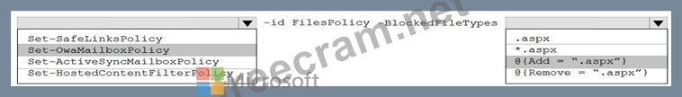 You need to modify FilesPolicy to prevent users from downloading ASPX files. The solution must meet the technical requirements.