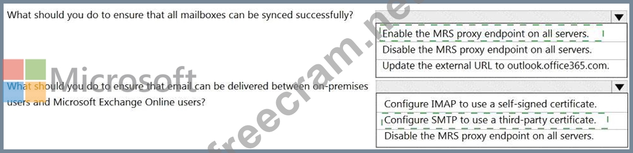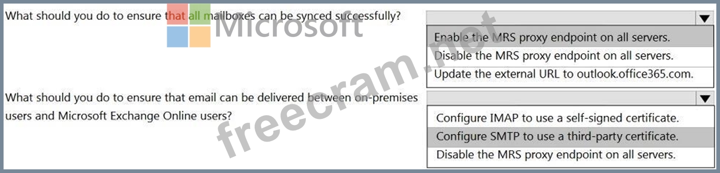 Question 7: You have a hybrid deployment between Microsoft Exchange Onli...