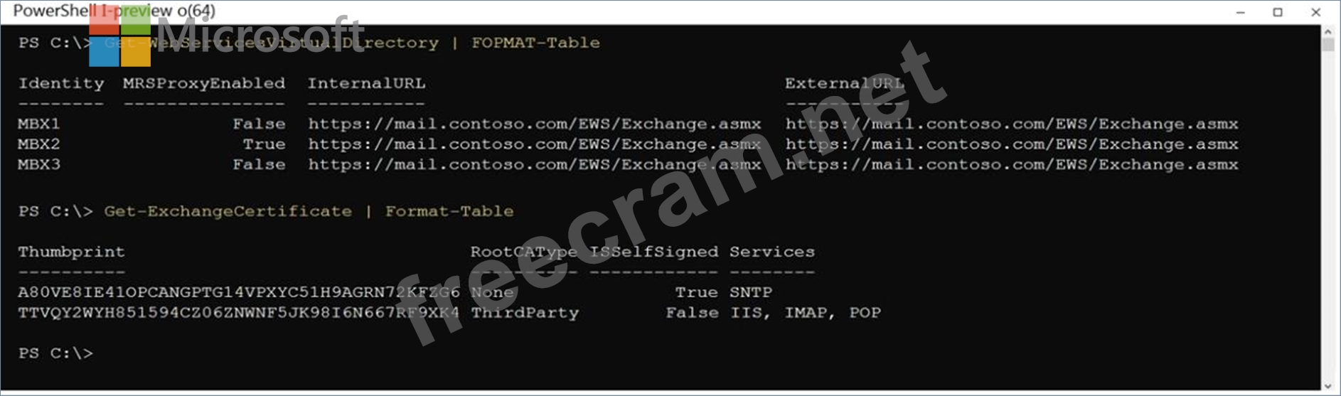 Question 70: You run the Get-WebServicesVirtualDirectory cmdlet as shown ...