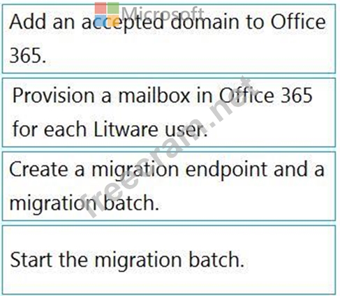 You need to migrate the mailboxes of Litware to Microsoft Office 365. The solution must ensure that users from Litware can receive email by using their current email address.