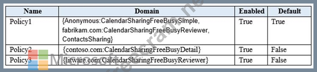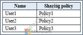 Your company named ADatum Corporation has a Microsoft Exchange Online subscription that contains the sharing policies shown in the following table.