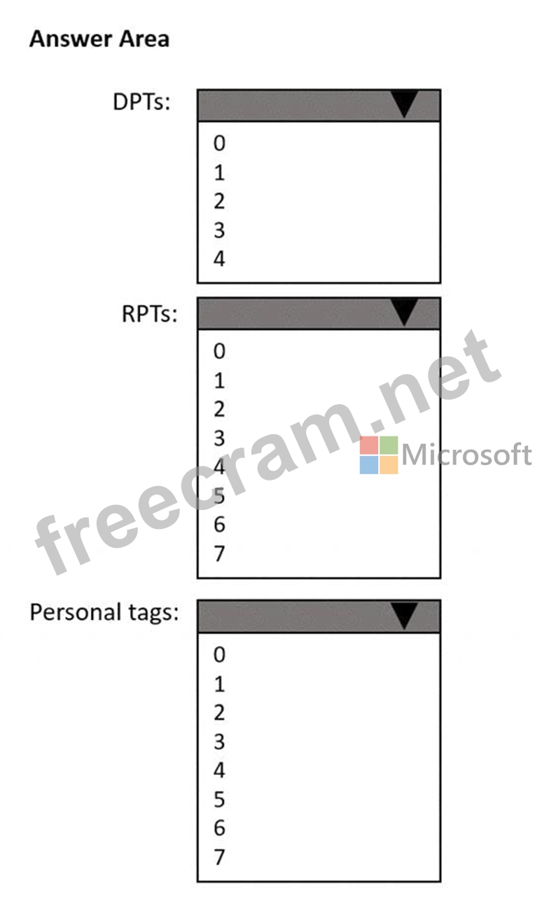 Ensure that any items without a retention tag are moved to the Archive mailbox two years after they were created and permanently deleted seven years after they were created.