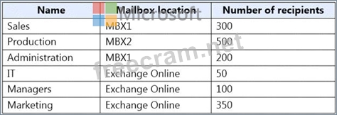 Your company has a Microsoft Exchange Server 2019 hybrid deployment that contains two Mailbox servers named MBX1 and MBX2.