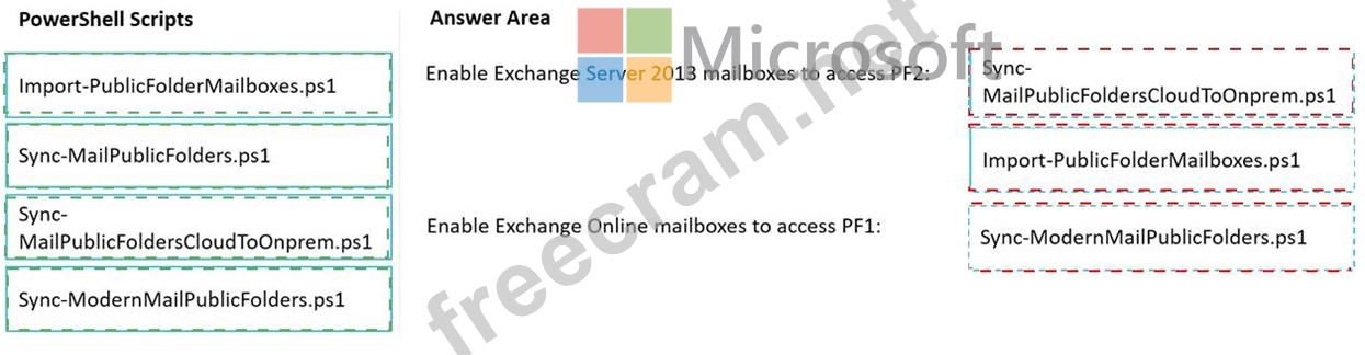 You have a hybrid deployment between a Microsoft Exchange Online tenant and an on-premises Exchange Server 2013 organization. The deployment contains the public folders shown in following table.