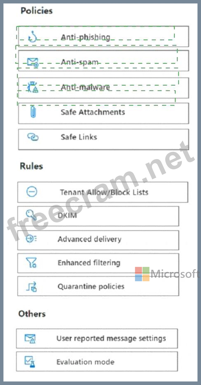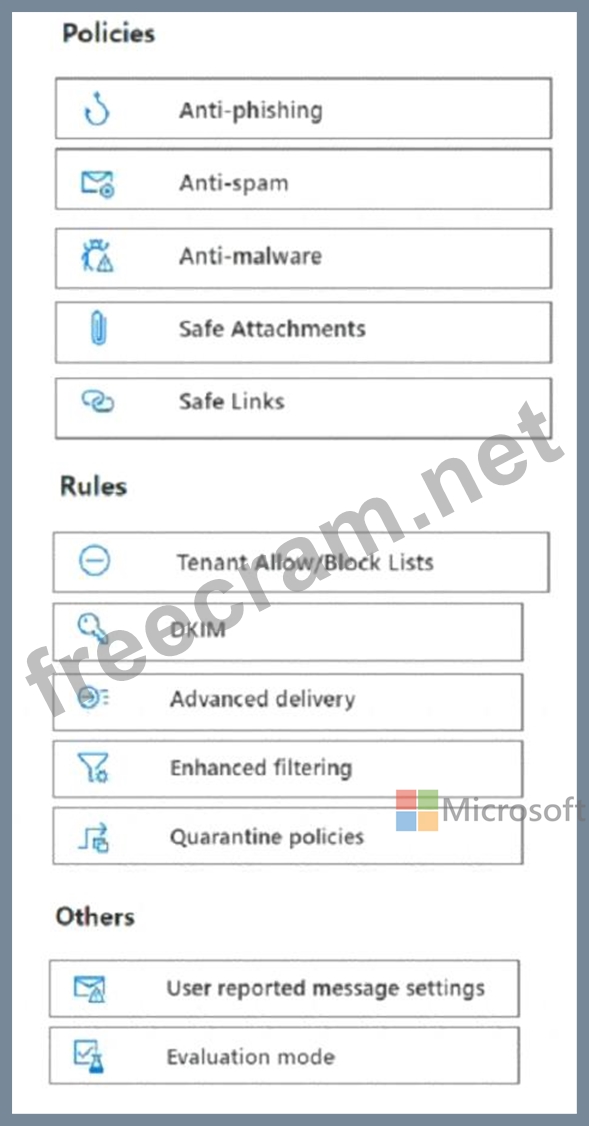 You need to configure Microsoft Defender for Office 365 to meet the following requirements:
