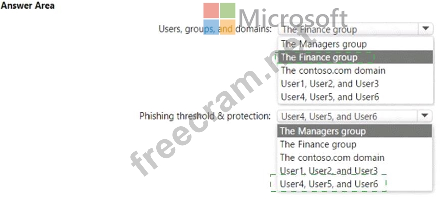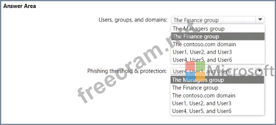 You plan to create an anti-phishing policy named Policy1 to meet the following requirements: