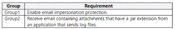 You have a Microsoft 365 subscription that has Microsoft Defender for Office 365 enabled and contains two groups named Group1 and Group 2. The members of the groups must meet the requirements shown in the following table.