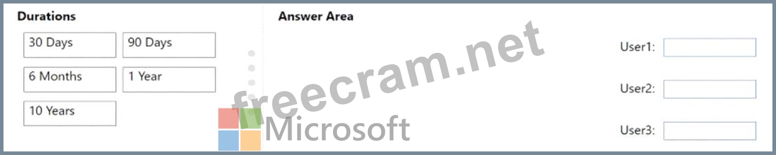 What is the maximum duration that you can set for each user? To answer, drag the appropriate duration values to the correct users. Each duration value may be used once, more than once, or not at all. You may need to drag the split bar between panes or scroll to view content.