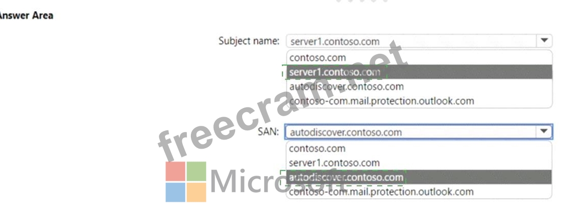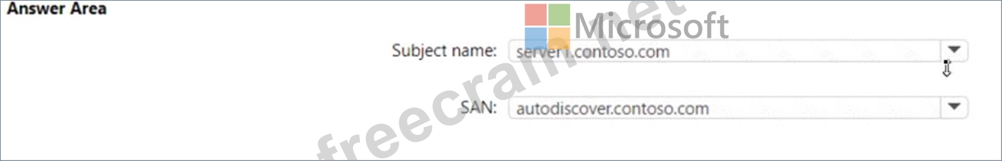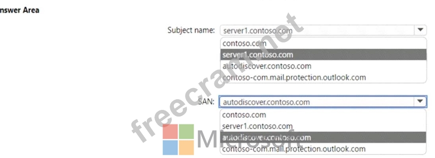 How should you configure the values of the subject name and the subject alternative name (SAN) for the certificate? To answer, select the appropriate options in the answer area.
