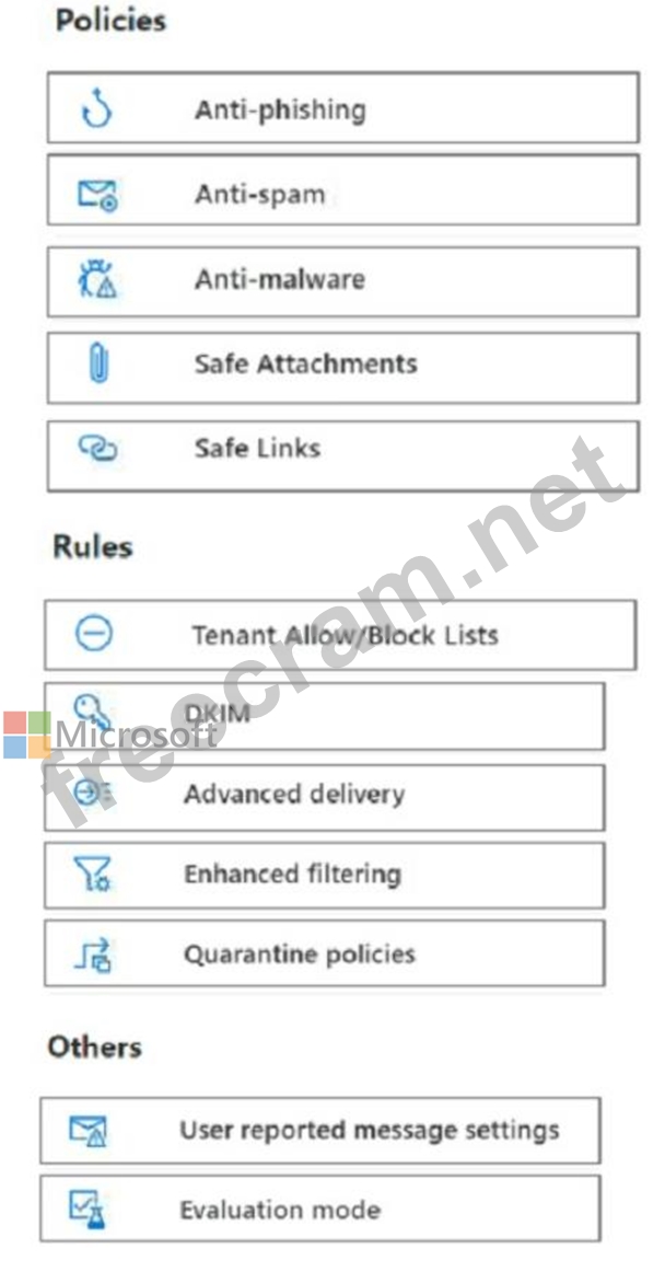You need to configure Microsoft Defender for Office 365 to meet the following requirements: