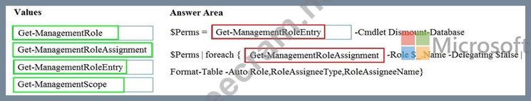 You need to identify which accounts in Active Directory are assigned permissions to dismount mailbox databases.