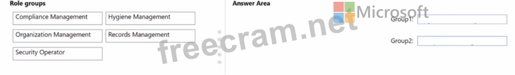 To which role group should you add each group? To answer, drag the appropriate role groups to the correct groups. Each role group may be used once, more than once, or not at all You may need to drag the split bar between panes or scroll to view content.