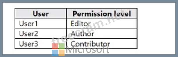 You have a Microsoft Exchange Online tenant that contains a public folder named PF1 and three users named User1, User2, and User3. Users are assigned public folder permissions to PF1 as shown in the following table.