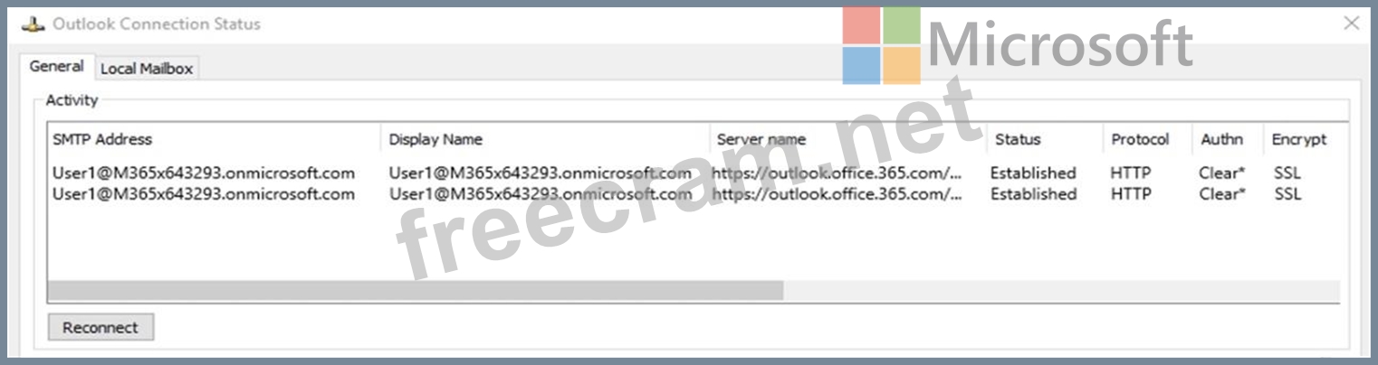 The Outlook Connection Status for User1 is shown in the following exhibit.