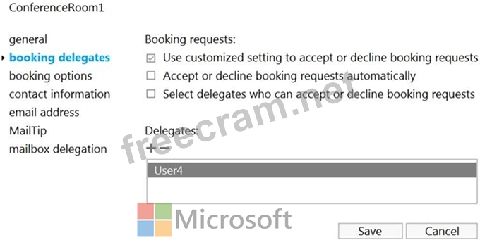 You have a Microsoft Exchange Online tenant that contains a resource mailbox named ConferenceRoom1.