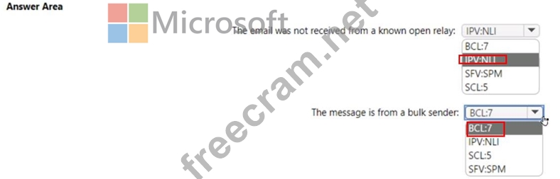 You receive an email that was scanned by Exchange Online Protection (EOP) and contains the following message header.