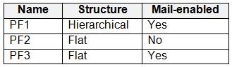 You have a Microsoft Exchange Server 2019 hybrid deployment that contains the public folders shown in the following table.