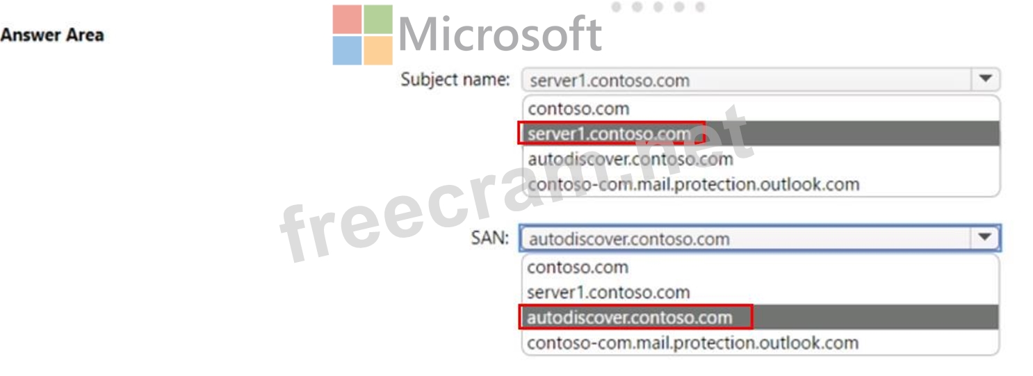 How should you configure the values of the subject name and the subject alternative name (SAN) for the certificate? To answer, select the appropriate options in the answer area.