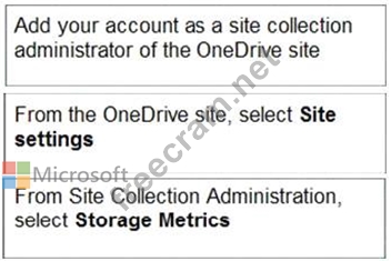 From the Microsoft Office 365 admin center, you view the OneDrive for Business usage report and discover that a user named User1 consumes a large amount of OneDrive storage.