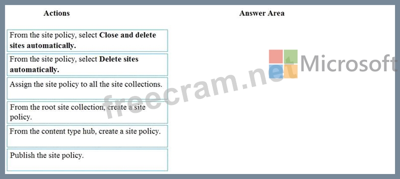 Which four actions should you perform in sequence? To answer, move the appropriate actions horn the list of actions to the answer area and arrange them in the correct order.