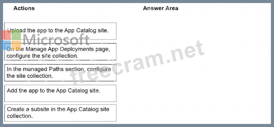 Which three actions should you perform in sequence next? To answer, move the appropriate actions form the list of actions to the answer area and arrange them in the correct order.