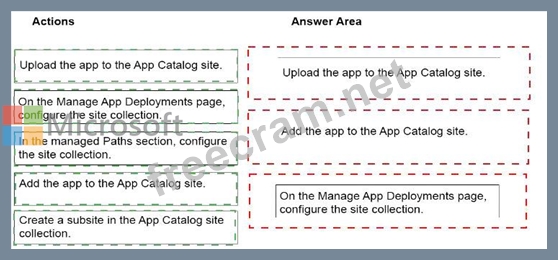 You need to ensure that the app is available automatically to users in a specific site collection without requiring the users to install the app.