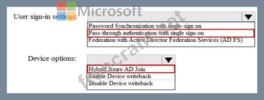 How should you configure Azure AD Connect? To answer, select the appropriate options in the answer area.