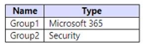 You have a Microsoft 365 E5 subscription that contains a user named User1 and the groups shown in the following table.