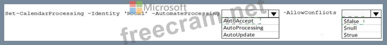 You need to ensure that Room1 automatically accepts meeting invitations. The solution must prevent meeting invitations from being accepted if the room is unavailable.