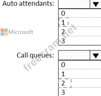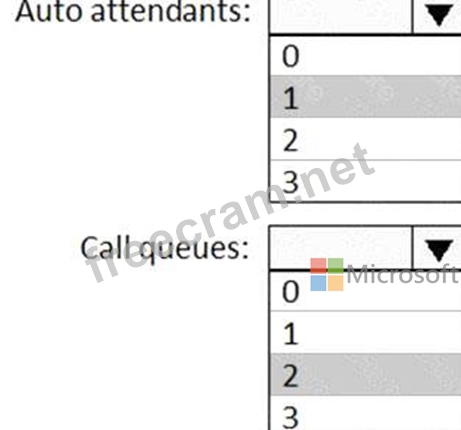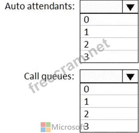 What is the minimum number of auto attendants and call queues you should configure to meet the requirements? To answer, select the appropriate options in the answer area.