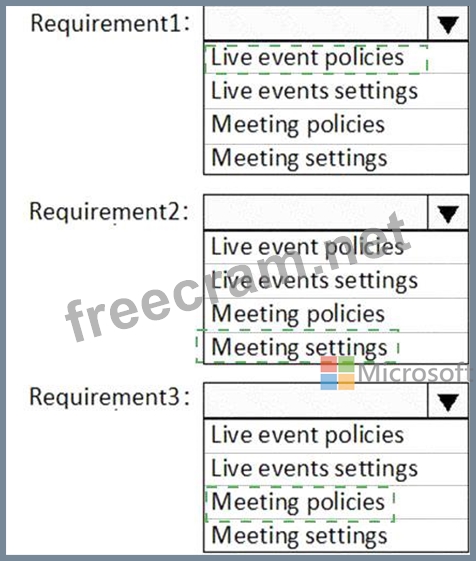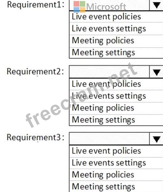 You need to configure Microsoft Teams to meet the requirements shown in the following table.
