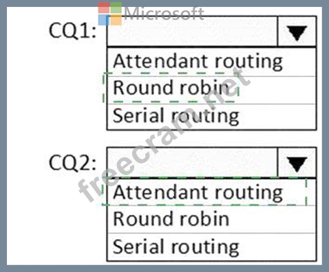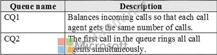 Which routing method should you configure for each call queue? To answer, select the appropriate options in the answer area.