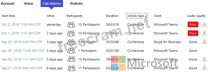 You view the call history as shown in the Call History exhibit. (Click the Call History tab.)