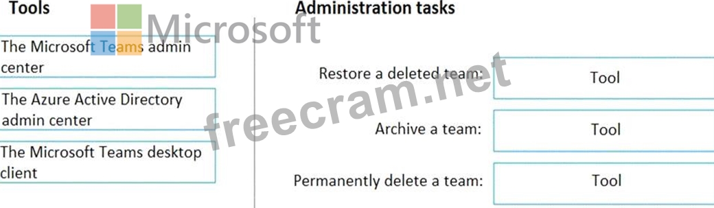 Which tool should you identify for each task? To answer, drag the appropriate tools to the correct tasks. Each tool may be used once, more than once, or not at all. You may need to drag the split bar between panes or scroll to view content.