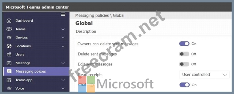 The company's only messaging policy is a global messaging policy configured as shown in the following exhibit.